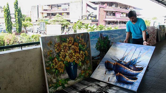 “Dulu ramai, kira-kira sebelum ada kebakaran, setelah itu jadi sepi. Apalagi sudah banyak toko-toko oleh-oleh modern. Perekonomian di sini semakin menurun. Ini sudah siang begini, belum ada pembeli,” ujar Nyoman, pedagang setempat, sembari menata barang dagangannya.