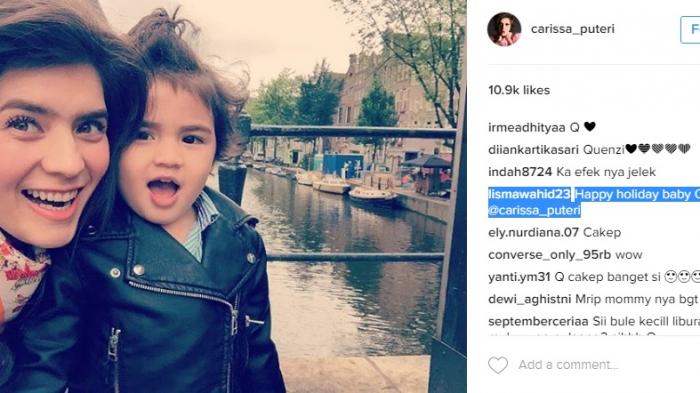 "Mama Carisa Putri yg cantiik banget @carissa_putri bersama jagoan ciliknya yg lucuuu bangeett," tulisnya.
