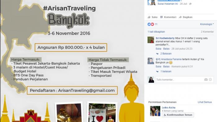 Arisan traveling ke Bangkok direncanakan pada tanggal 3-6 November 2016.