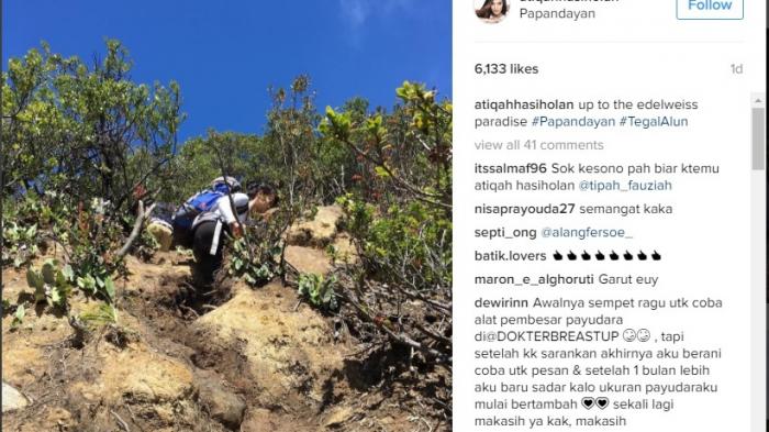 Hal ini diketahui dari foto-foto yang ia unggah di akun Instagram @atiqahhasiholan, sejak Sabtu (30/7/2016) lalu.
