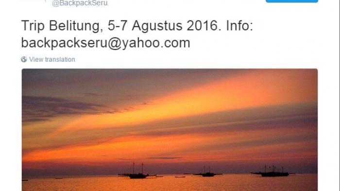 Dilangsir TribunTravel.com dari akun Twitter @backpackseru, lagi open trip ke Belitung lho.
