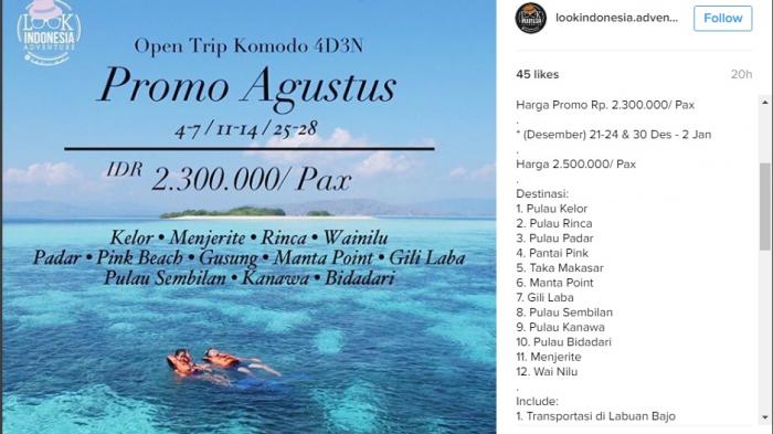 Akun Instagram @lookindonesia.advanture sedang mengadakan promo traveling ke Kepulauan Nusa Tenggara.