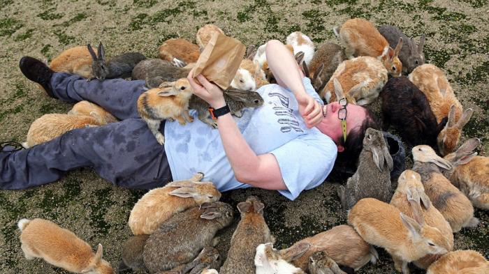 Kelinci yang hidup di Pulau Okunoshima.
