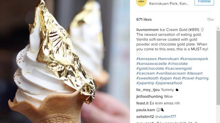 Jangan kaget ya, lapisan emas di es krim ini rasanya cuma hambar.