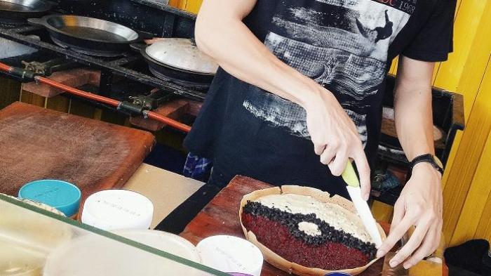 Kamu cukup merogoh kocek Rp 85 ribu untuk mendapatkan seporsi martabak manis ini.