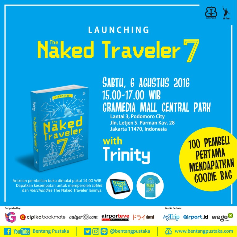 Buku traveler terlaris di Indonesia yang telah memiliki beberapa seri ini, akan meluncurkan bagian terbarunya dengan judul The Naked Traveler 7.