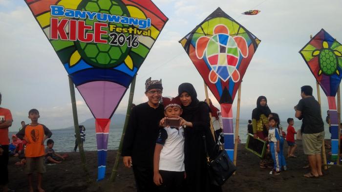 Bupati Banyuwangi, Abdullah Azwar Anas pun turut menerbangkan layang-layang.