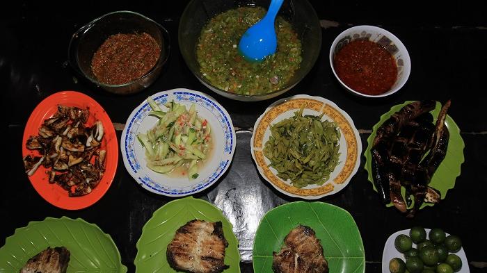 Terlebih sayur kangkung atau timun yang khas juga disajikan untuk menemani makan.