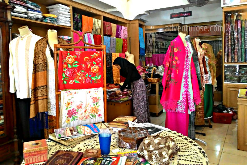 Toko ini juga menyediakan kain tenun songket dan gantungan kunci.