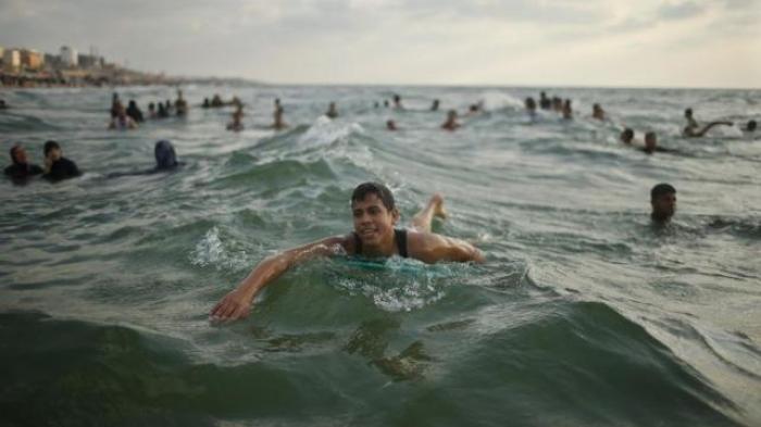 Biasanya masyarakat Palestina menghabisakan senja dengan bermain air atau sekedar duduk santai di bibir pantai ini.