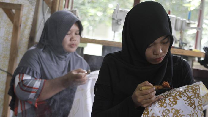 Lokasi tersebut sekaligus menjadi tempat produksi batik mulai dari mencanting, pewarnaan, hingga pembuatan produk siap pakai.