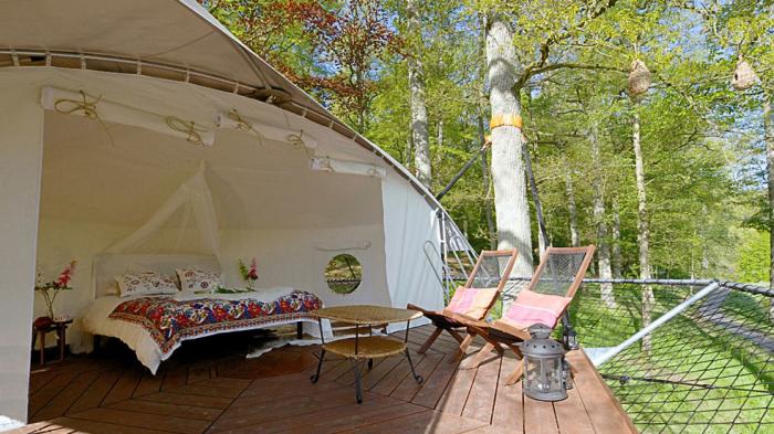 Treehouse Dom'up dirancang khusus dikaitkan pada pohon sehingga tidak menyentuh tanah.