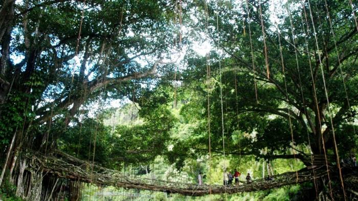 Jembatan tersebut benar-benar terbuat dari akar pohon yang saling membelit satu sama lain.