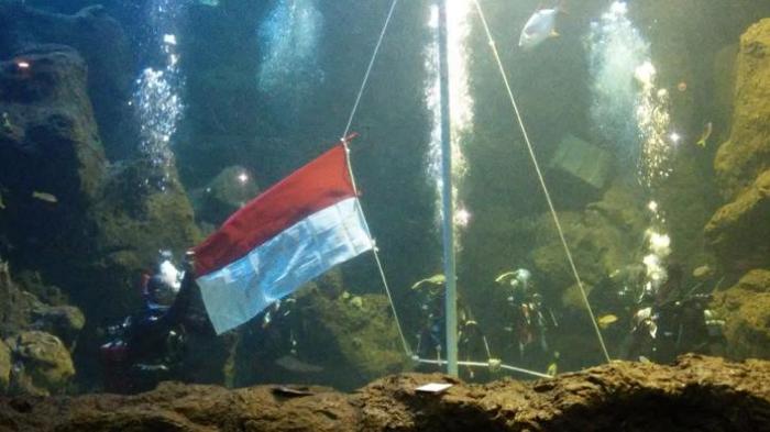 Ancol juga mengadakan upacara bendera di bawah air.