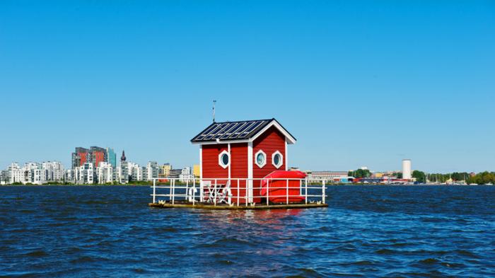 Di Swedia ada sebuah hotel yang desainnya mirip dengan gudang mengambang di laut, lokasi ini biasa di sebut Utter Inn.