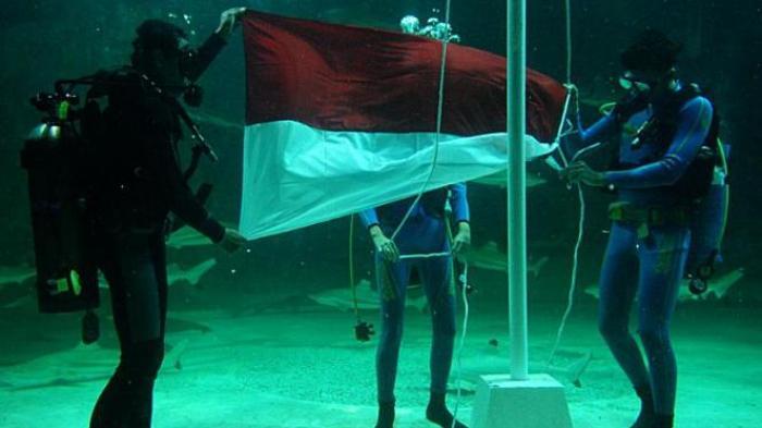 Mereka akan menggelar upacara pengibaran bendera Merah Putih di laut, Rabu (17/8/2016).