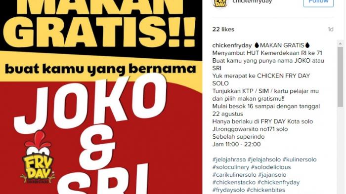 Satu di antaranya banyak outlet yang bagi-bagi diskon adalah Chicken Fry Day Solo.
