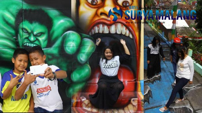 Kampung 3D yang kini jadi spot selfie ini terletak di jantung Kota Malang, tepatnya di RW 12, Kelurahan Kesatrian, Kota Malang.