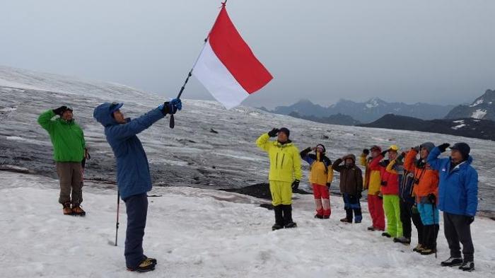 Selain mengibarkan bendera Merah Putih, tim juga membacakan teks naskah proklamasi Indonesia dan menyanyikan lagu kebangsaan.