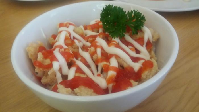 Hidangan ini membuat lidah jadi tergoda, rasanya pun pas, berpadu dengan saus sambal serta mayonese dan meninggalkan jejak enak di mulut.