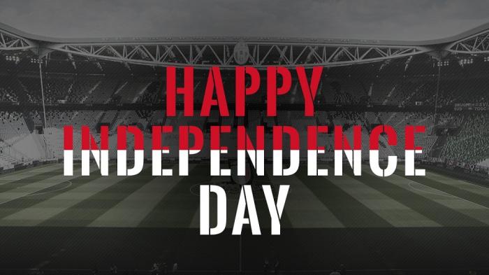 Pada akun Twitter @juventusfcen, mengunggah sebuah gambar bertuliskan Happy Independence Day dengan latar stadion sepakbola.