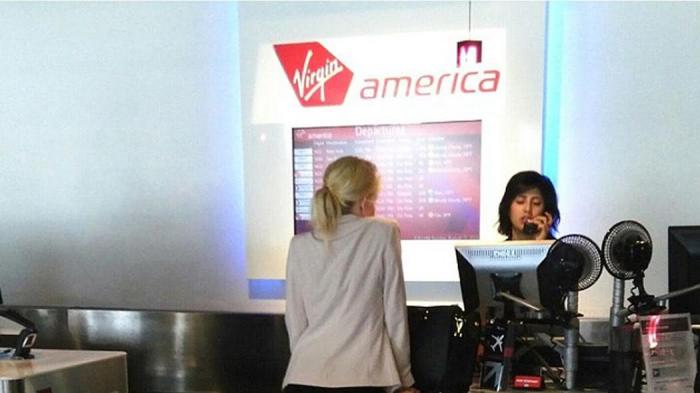 Di Virginia, ada foto seorang wanita tengah melakukan check in di maskapai Virgin America di AS.