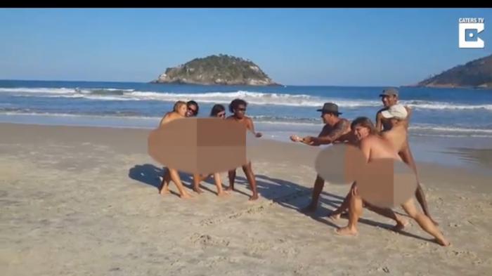 Para nudies atlet ini merupakan turis yang berada di sekitar pantai yang secara sukarela berpartisipasi.