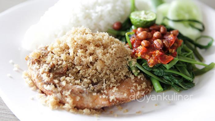 Anda bisa memilih bagian ayam, termasuk kremesan untuk ayam goreng.
