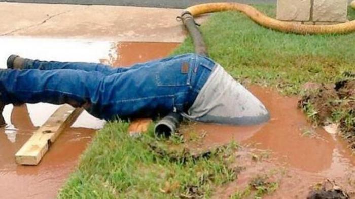 Saat itulah, Cox membenamkan kepala hingga pinggangnya ke dalam genangan air kotor untuk menjangkau lokasi pipa yang pecah, di pekarangan rumah Adams.