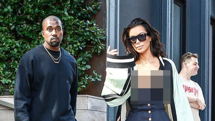 Sangat jelas terlihat Kim Kadarshian tidak mengenakan bra.
