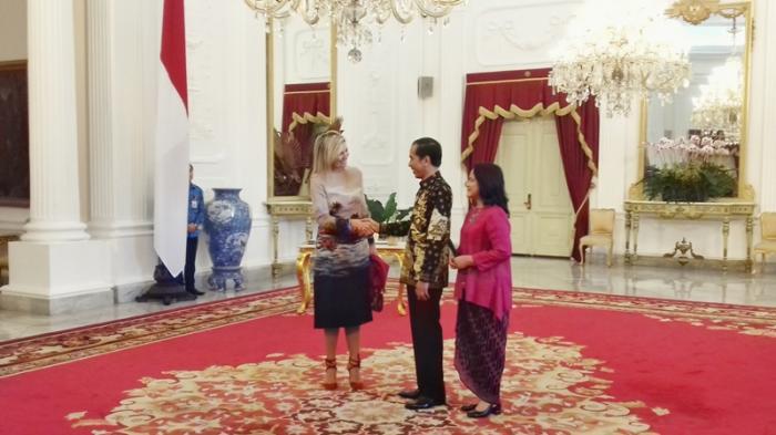 Ratu Maxima datang dari Kerajaan Belanda bertemu dengan Jokowi di Istana Merdeka, Jakarta Pusat.