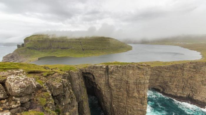 Di sana terdapat sebuah danau yang berada di atas lautan, danau tersebut diberi nama Sorvagsvatn.