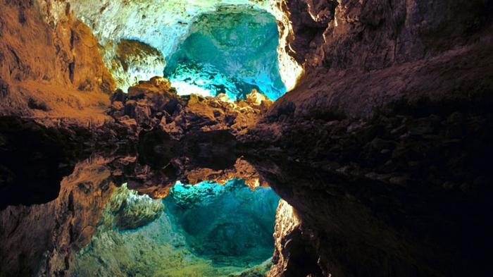 Kolam bentukan alam ini terlatak di dalam gua yang memiliki air asin begitu jernih.
