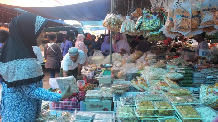 Makanan lebaran yang biasa dijual seperti kue-kue kering, kemplang, keretek, kericu, aneka asinan dan masih banyak lagi.