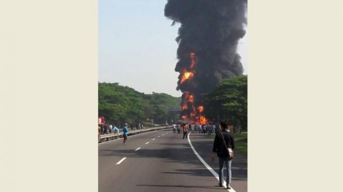 Kecelakaan yang berujung kebakaran ini terjadi di KM 33.