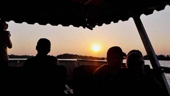 Puas berarung jeram, kamu bisa lepas lelahmu dengan melihat matahari terbenam dari atas kapal yang berkapasitas 40 penumpang.