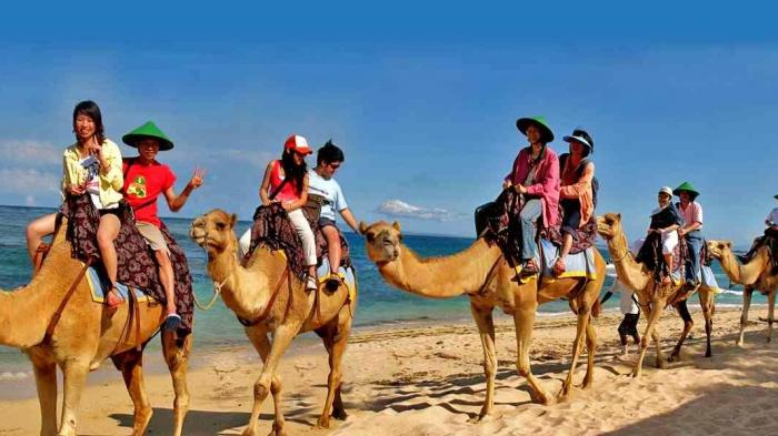 Di Nusa Dua, Bali, kamu bisa naik di punggung unta dengan trek Pantai Sawangan, lho.