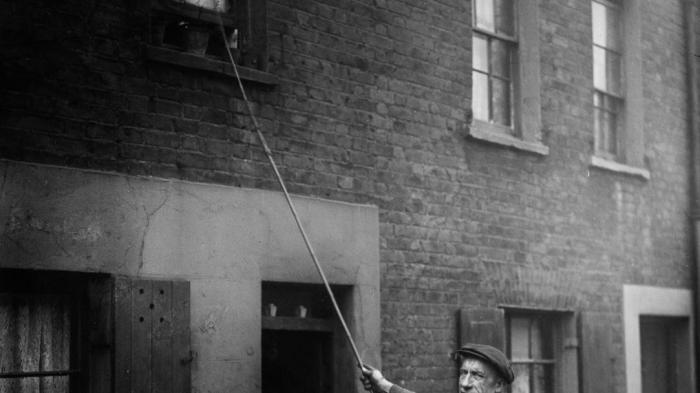 Tukang ketuk jendela ini, biasa disebut knocker-up, akan dibayar beberapa sen untuk seminggu.