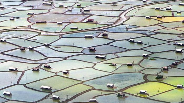 Dari kejauhan, tambak yang sangat luas tersebut terlihat seperti petak-petak sawah yang belum ditanami padi.