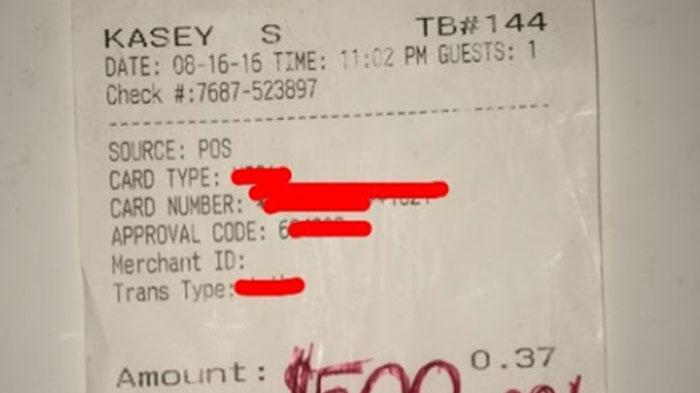 Pelayan itu bernama Kasey Simmons yang bekerja di Restoran Applebee, di Kota Dallas.