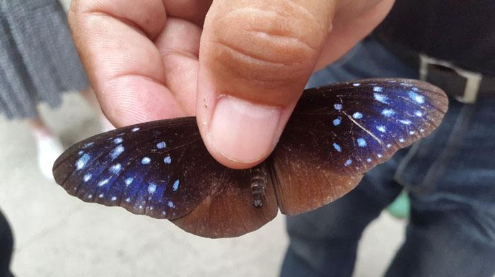 Selain kupu-kupu, pria itu juga menunjukkan seekor serangga mirip laba-laba yang menurutnya beracun, tapi tidak berbahaya bagi manusia.