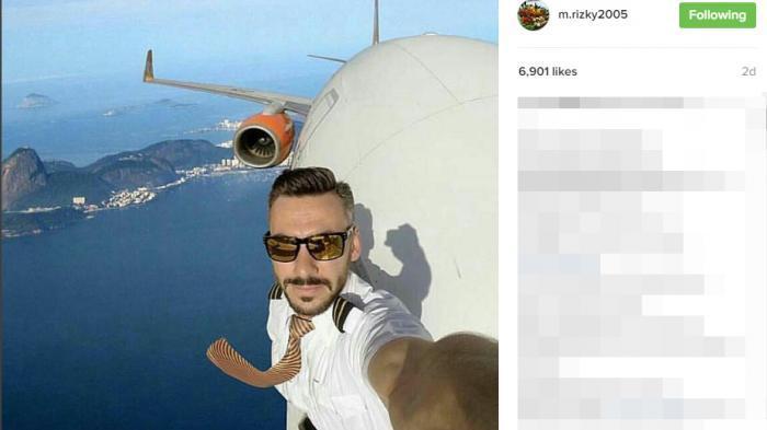 Dua hari lalu, akun Instagram @m.rizky2015 mengunggah foto pilot sedang selfie di atas pesawat.