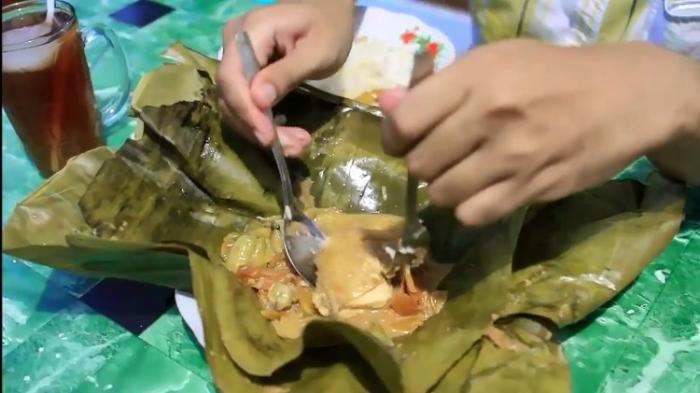 Berbahan dasar ayam yang dimasak dengan kuah santan lantas dibungkus mengguanakan daun pisang.