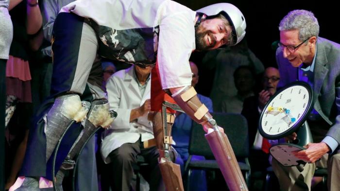 Uniknya, saat menerima hadiah nobel tersebut dia juga memakai kaki palsunya.