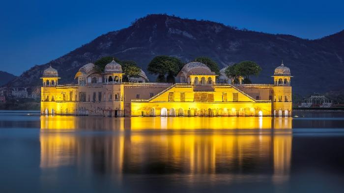 Destinasi yang berada di Rajasthan, India ini sangat unik sebab berada di tengah Danau Man Sagar.