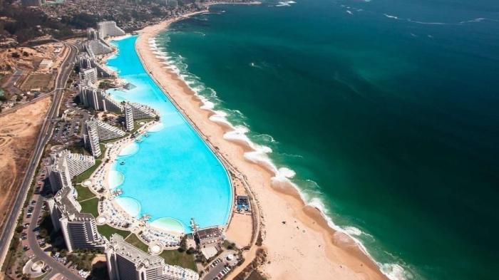 Adalah The Crystal Lagoon, kolam renang terbesar yang berada di San Alfonso del Mar Resort, Algarrobo, Chili.