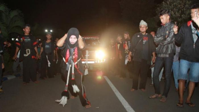 Sebelum Hilda tampil, belasan anggota paguyuban melakukan ritual dan membaca doa.