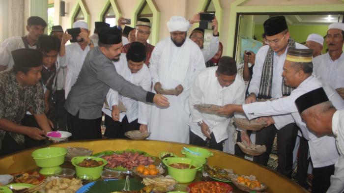 TRIBUNTRAVEL.COM, BANGKA - Sebuah dulang raksasa yang berisi aneka makanan diserbu tamu undangan.