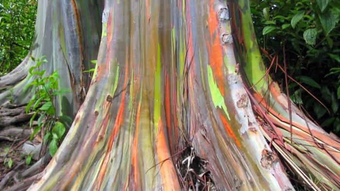 Pohon unik ini bernama Eucalyptus Deglupta, namun ada juga yang menyebutnya dengan Eucalyptus Rainbow.