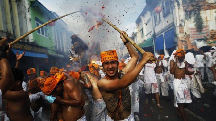 Ini adalah Vegetarian Festival di Phuket, Thailand.